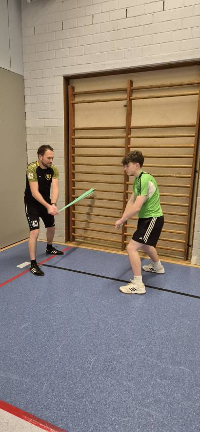 Den Abschluss der Reihe bildete ein Einblick in die sportliche Selbstverteidigung. In Partnerübungen wurden einfache Techniken und Reaktionsmuster vermittelt. Neben Koordination und Technik spielte auch das Thema Körperspannung und kontrollierte Kraft eine wichtige Rolle.