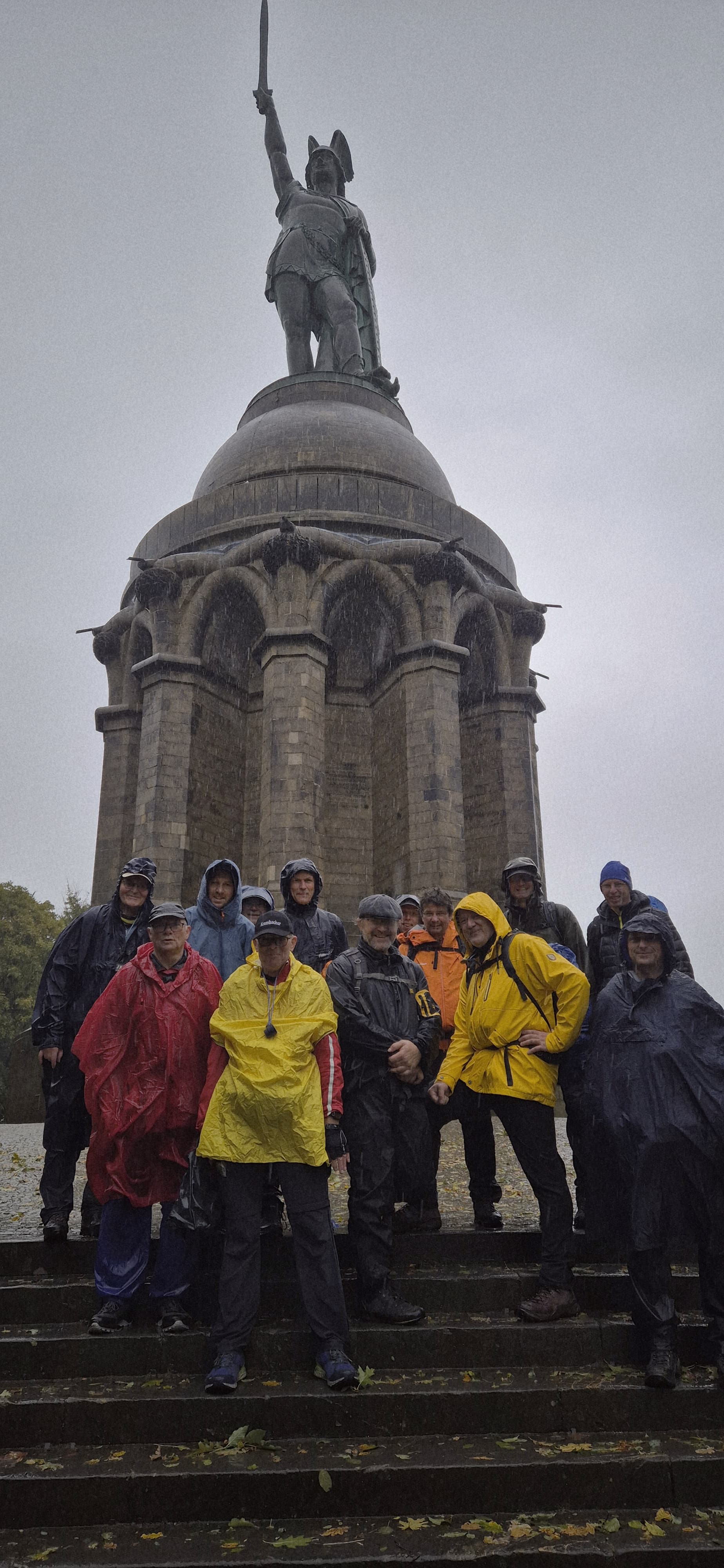 Am ersten Oktoberwochenende 2025 fand wieder die jährliche Mehrtageswanderung der Dienstagsmänner statt. Dieses Jahr ging es über den Eggekamm und durch den Teutoburger Wald nach Detmold. Wir sahen die Externsteine, die Falkenburg und das Hermannsdenkmal, die leider alle sehr nass waren. Die mit vielen Höhenmetern erkauften Aussichtspunkte boten ebenfalls nur eine recht trübe Aussicht, was der Stimmung aber nicht schadete.